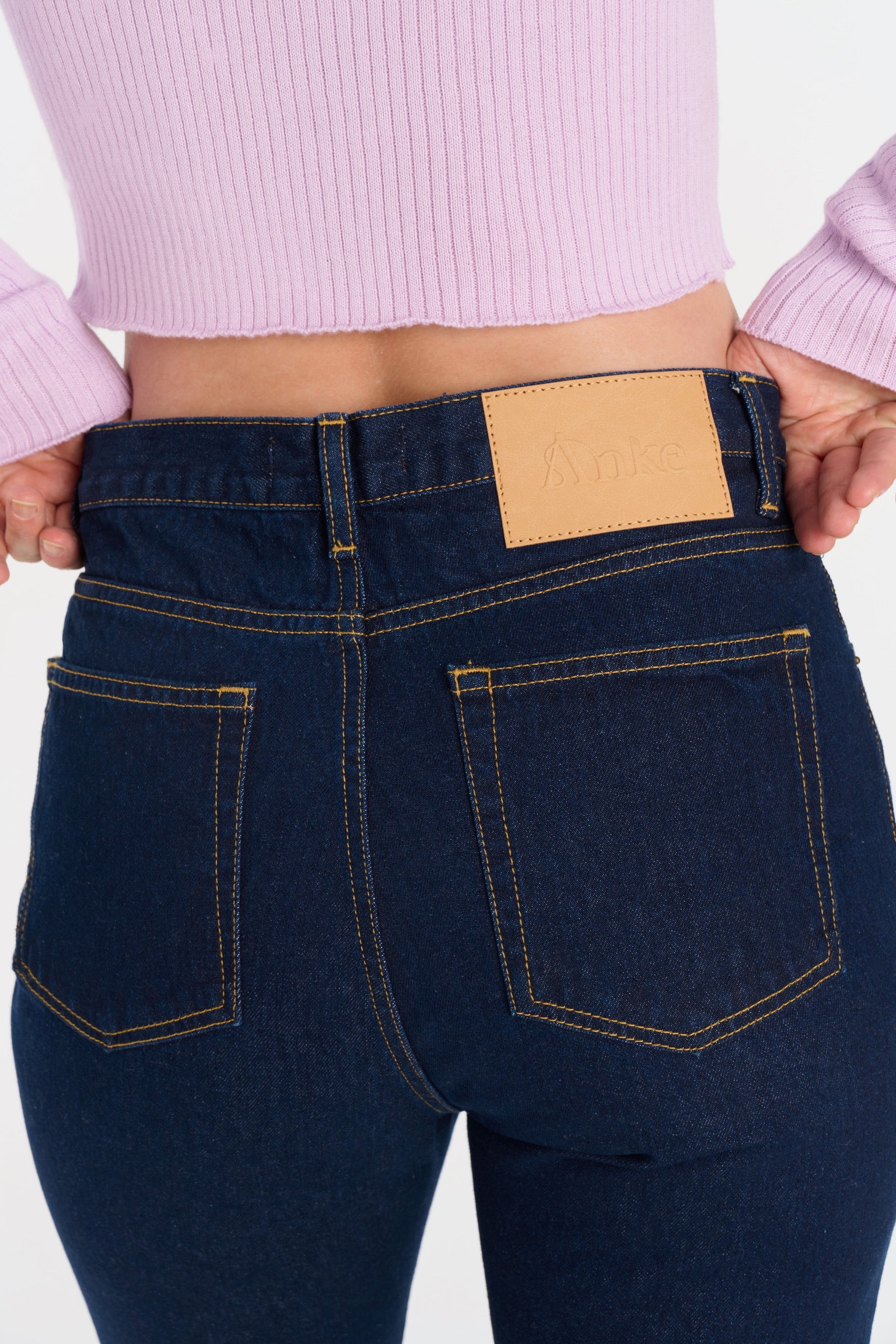 le jean droit, taille mi-haute et longueur 7/8ème.