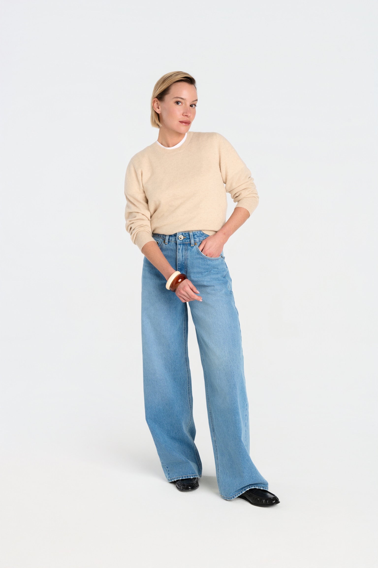 Une coupe large, taille haute, pour une allure affirmée mais décontractée.