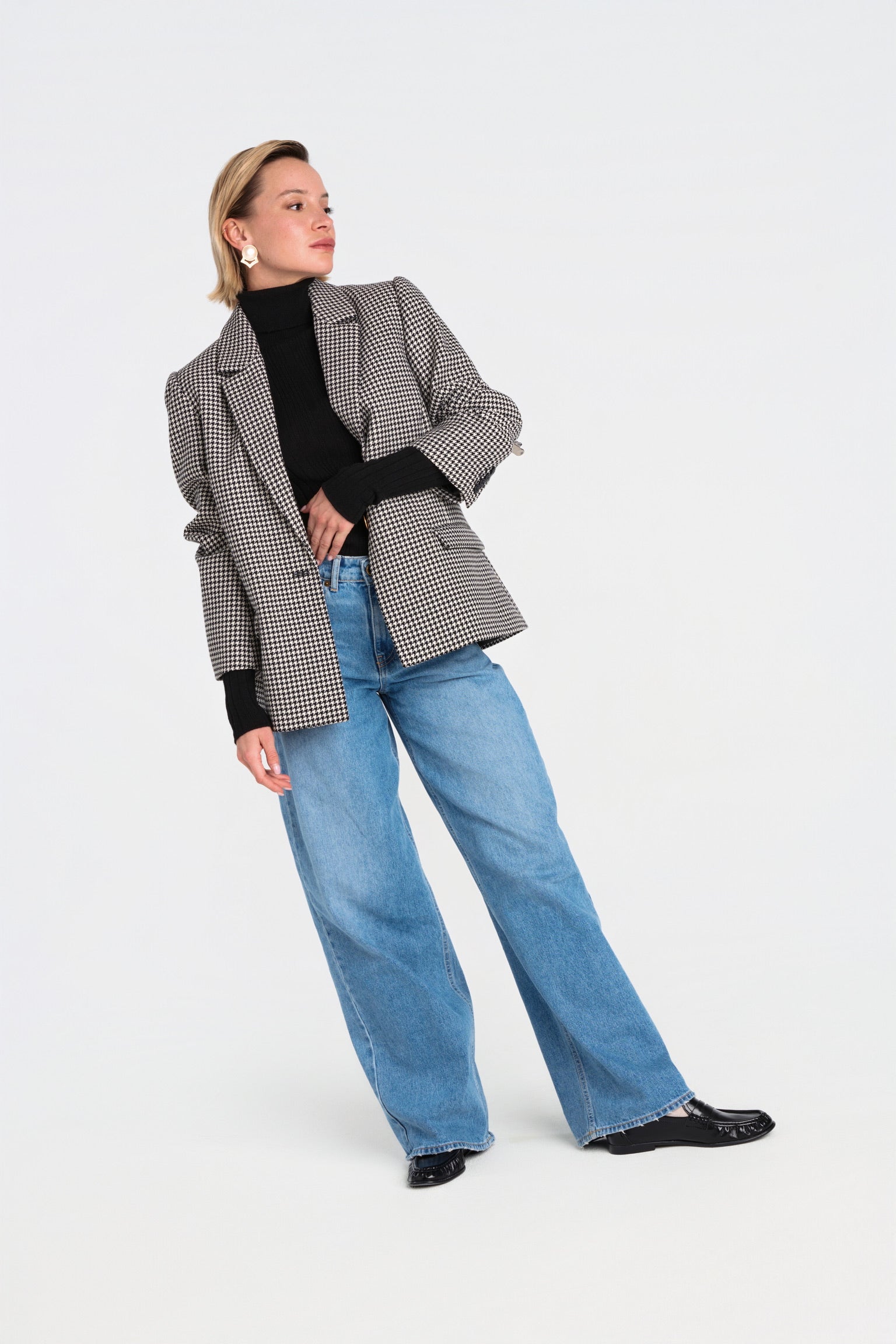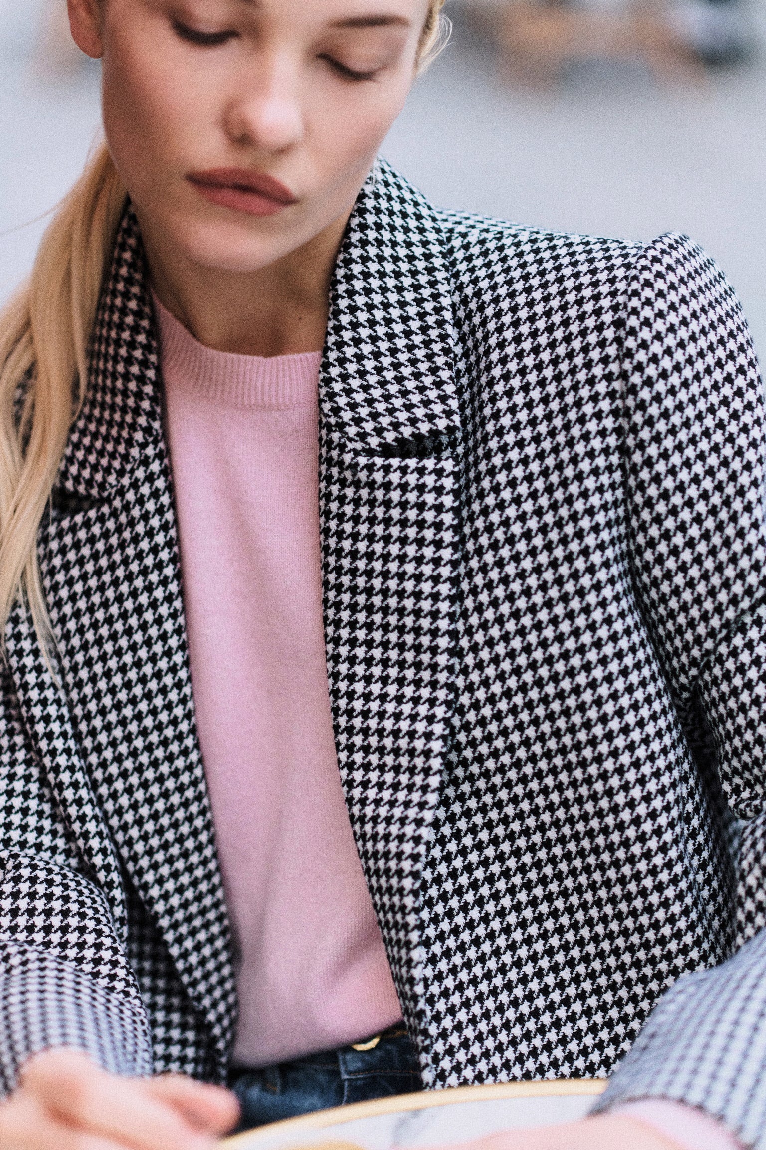 Un blazer légèrement cintré, inspiré des années 80 et revisité. Ses épaules structurées, sa ligne précise et son tombé fluide redessinent la silhouette avec justesse. Confectionné dans un drap de laine italien au motif pied-de-poule noir et blanc, issu des stocks dormants des grandes maisons, PIETRO allie caractère et élégance intemporelle.