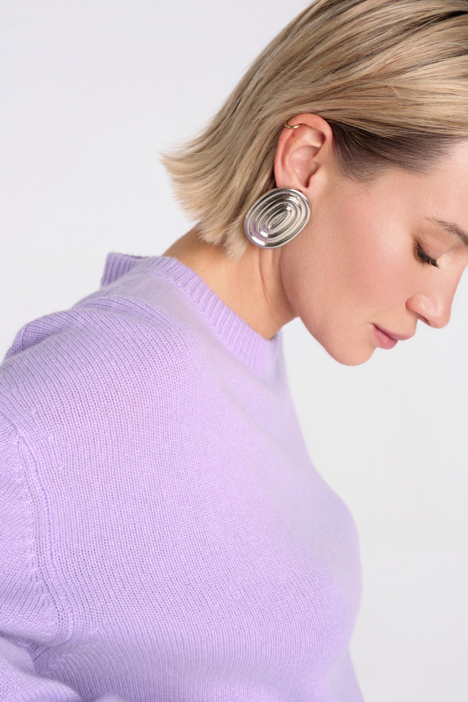 Les boucles SATURNE se distinguent par leur motif ovale concentrique, au fini argenté moderne et lumineux. Malgré leur taille généreuse (4 cm de diamètre), elles restent étonnamment légères et très confortables. Un design graphique et affirmé, parfait pour structurer un look minimaliste.