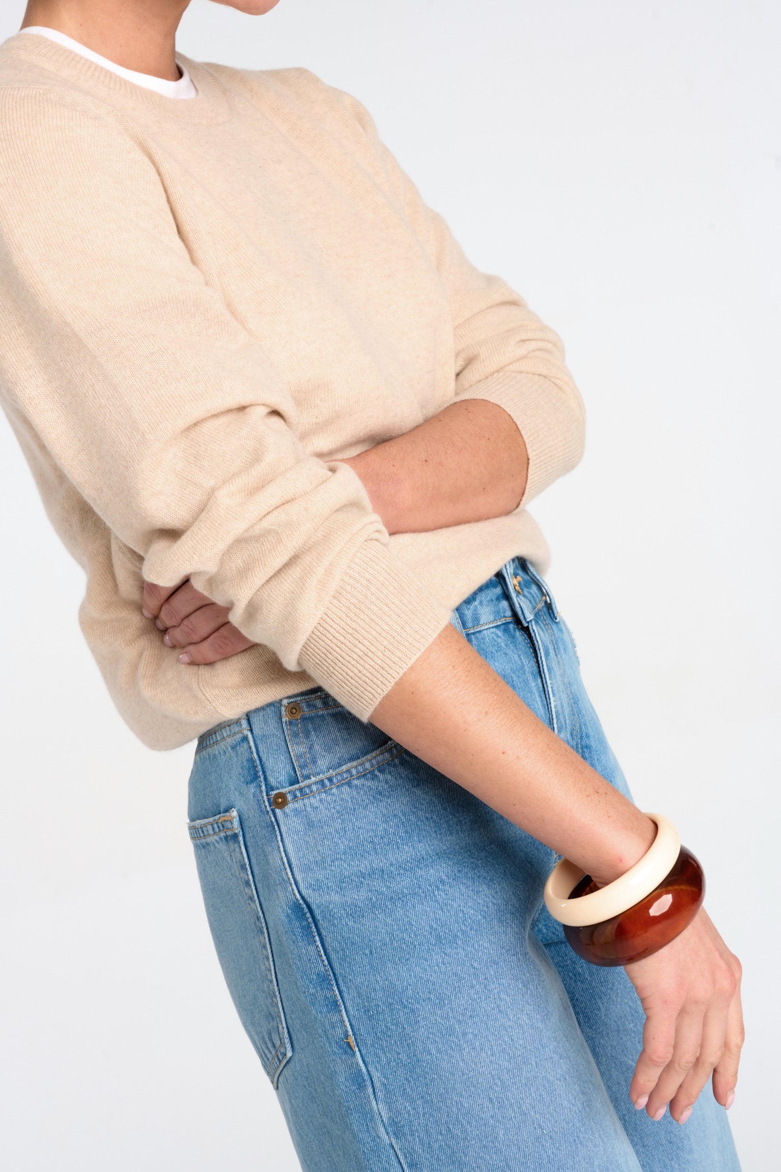 Un jonc vintage aux lignes pures, sélectionné pour sa présence sculpturale et son allure intemporelle. Une pièce unique chinée avec soin.