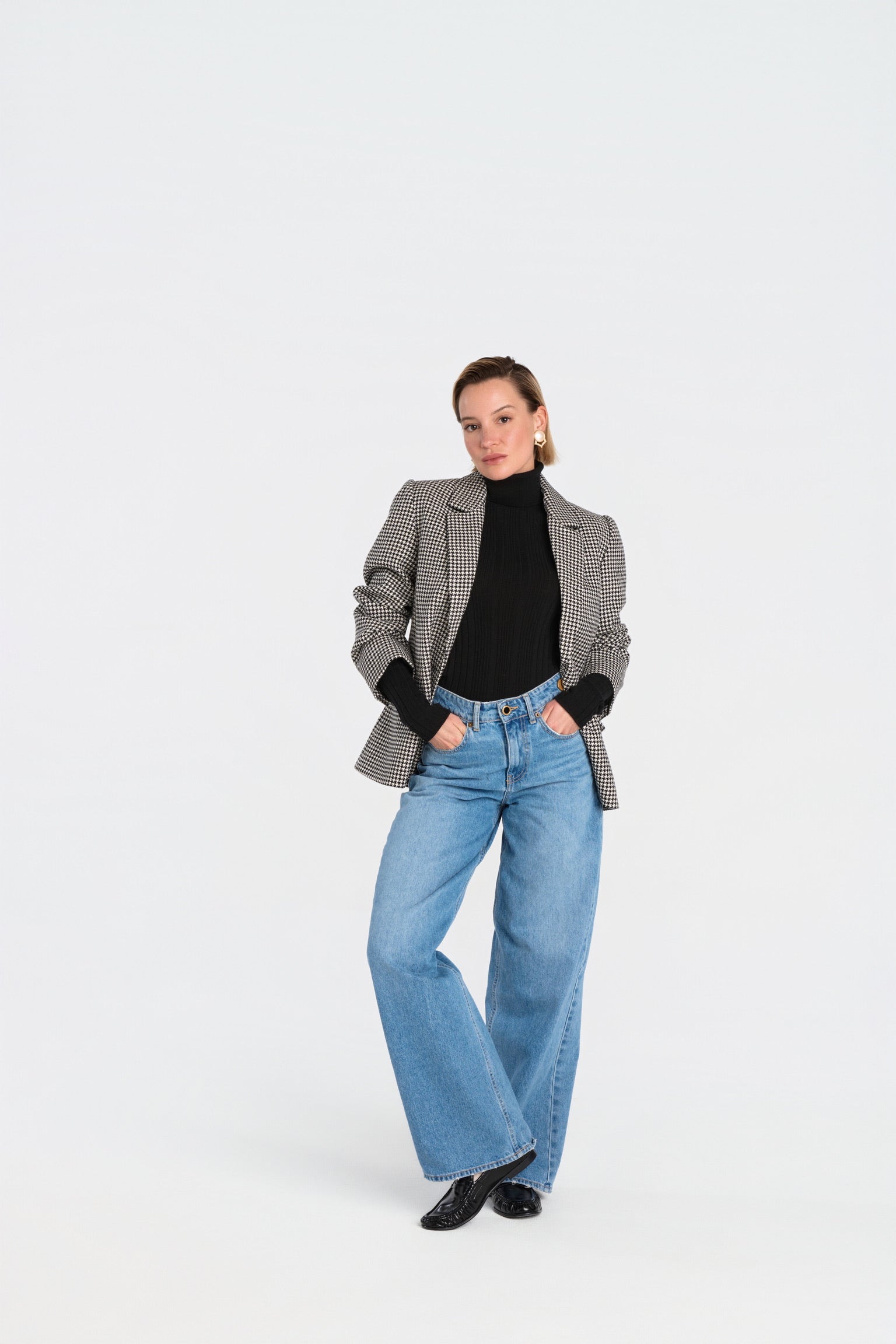 La toile est souple : elle accompagne le mouvement, donne du volume sans rigidité, et crée ce fameux effet sculptural : le jean paraît dessiné autour du corps, tout en conservant une allure effortless.