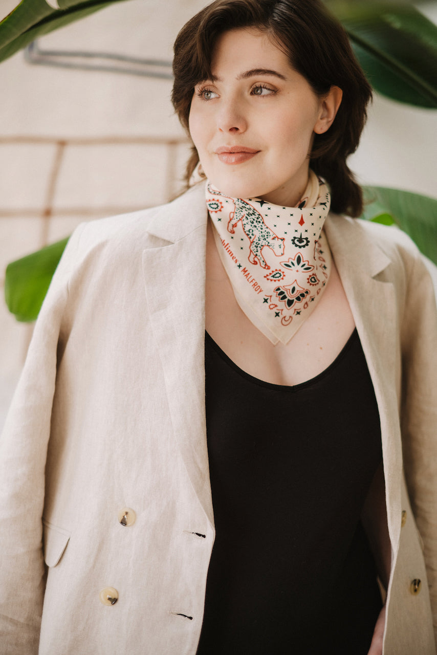 Notre bandana est fabriqué en France, en partenariat avec Maison Malfroy, entreprise familiale lyonnaise spécialisée dans le foulard et dotée d'un savoir faire ancestral.