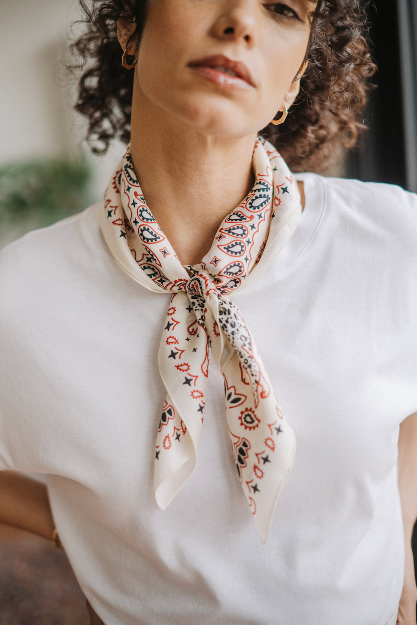 Petit carré pour grand effet ! Notre bandana en soie se décline en 4 couleurs pour accessoiriser toutes vos tenues. Nouez le autour du cou, dans vos cheveux pour les protéger du soleil ou autour de votre sac à main. Le plus dur sera de choisir la couleur !