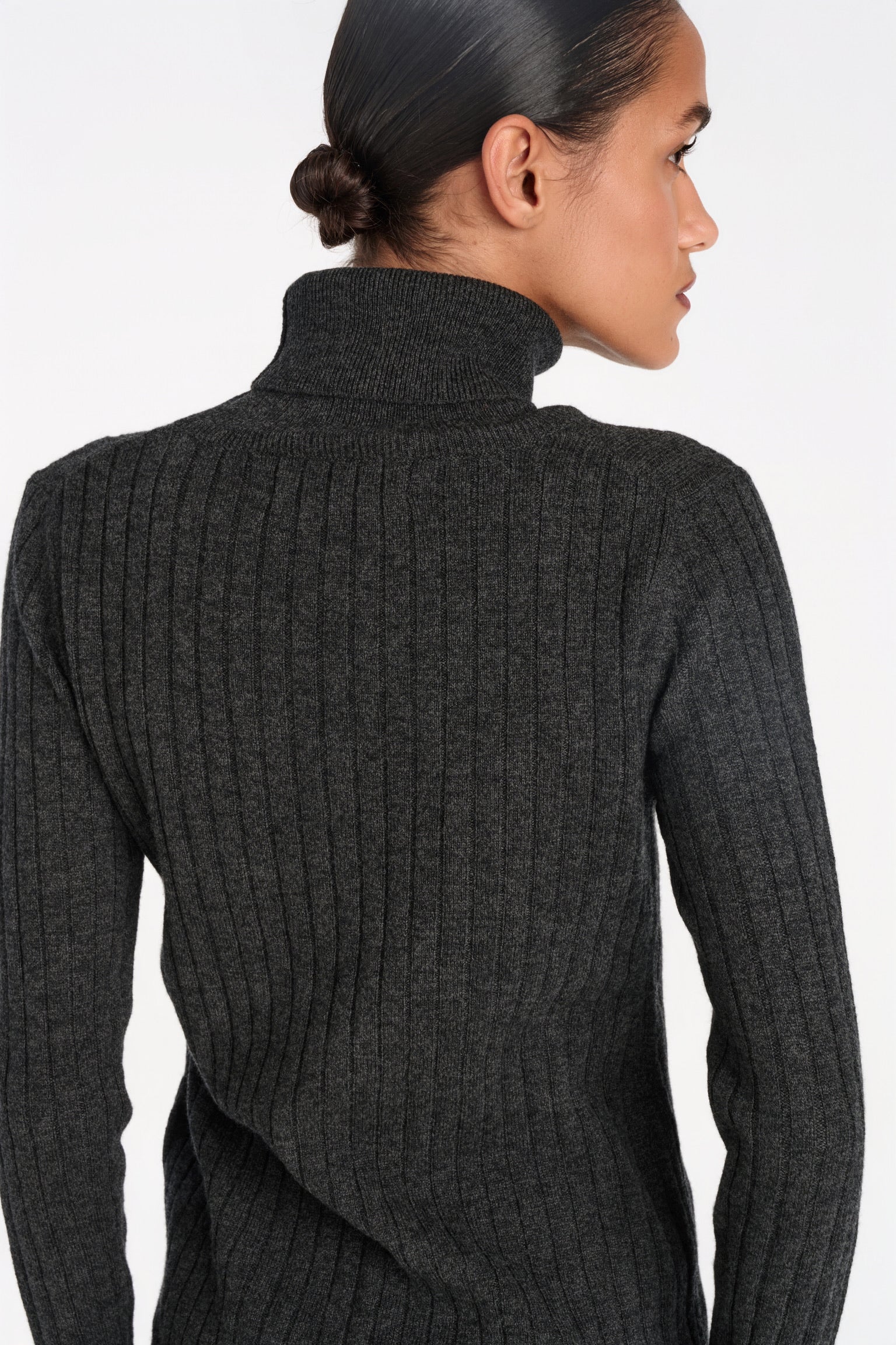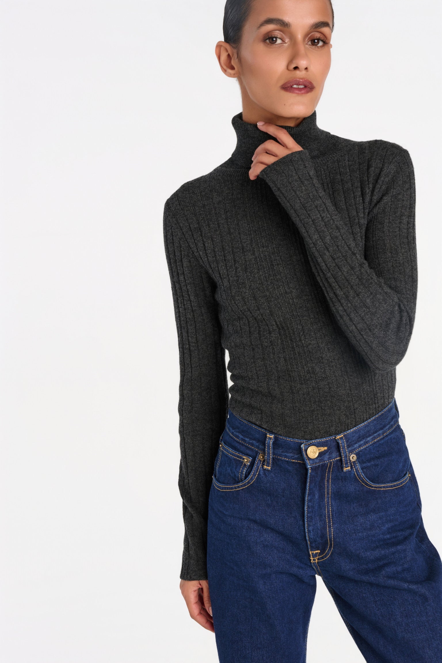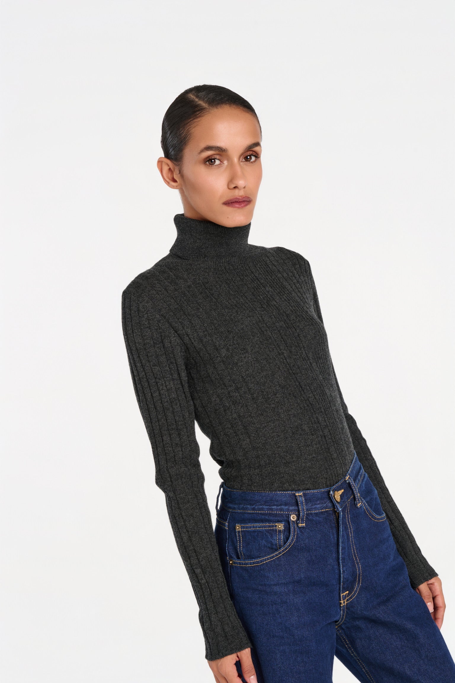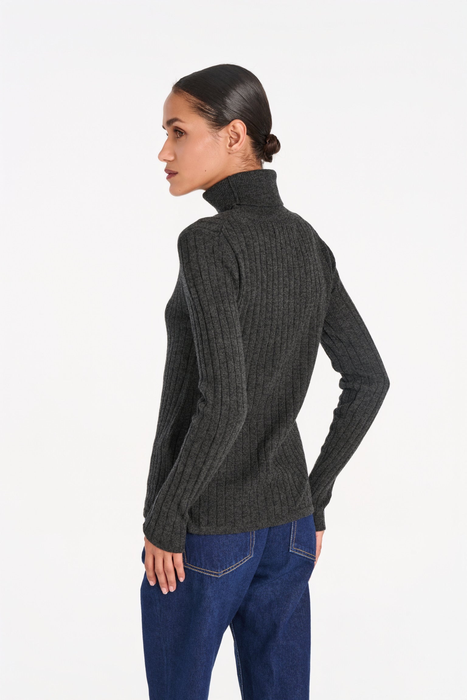 HELEN est un pull fin à col roulé avec un tricotage en côtes. Près du corps, Il est très doux, ne gratte pas, n'est pas transparent et peut se porter seul à même la peau ou en superposition sous notre pull GIL ou notre veste Pietro.