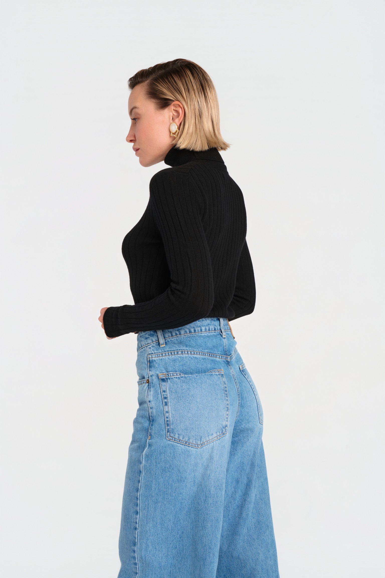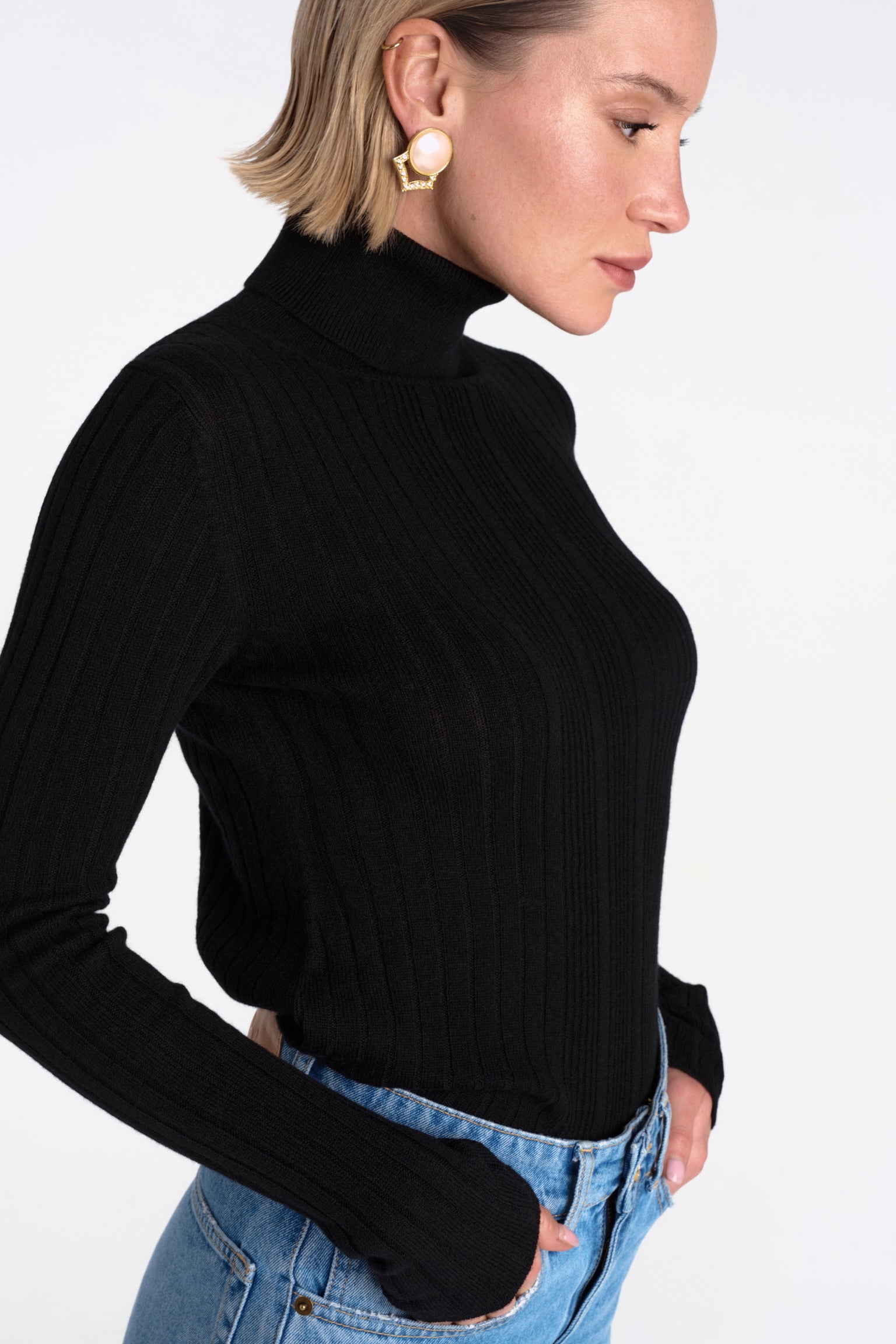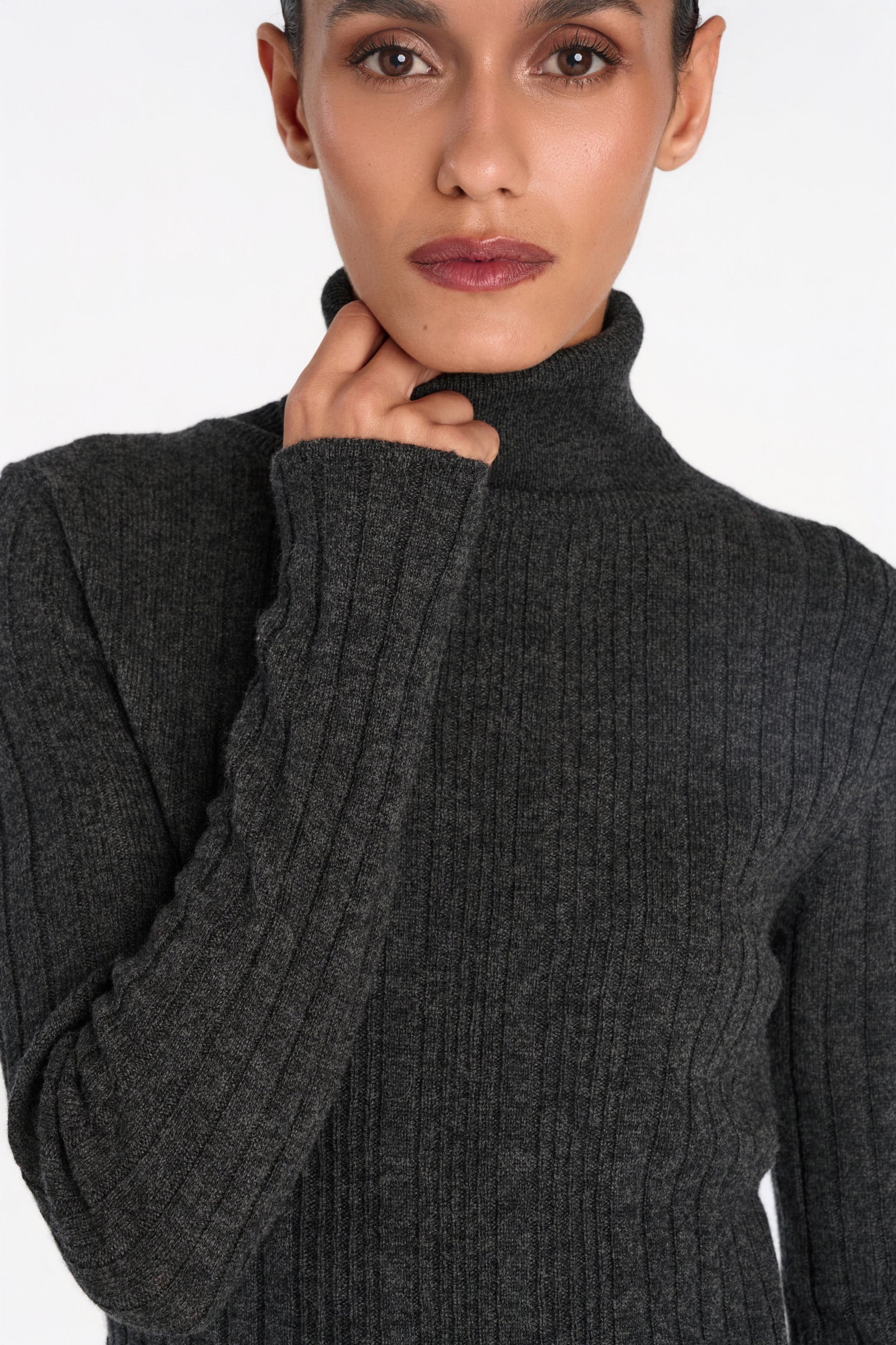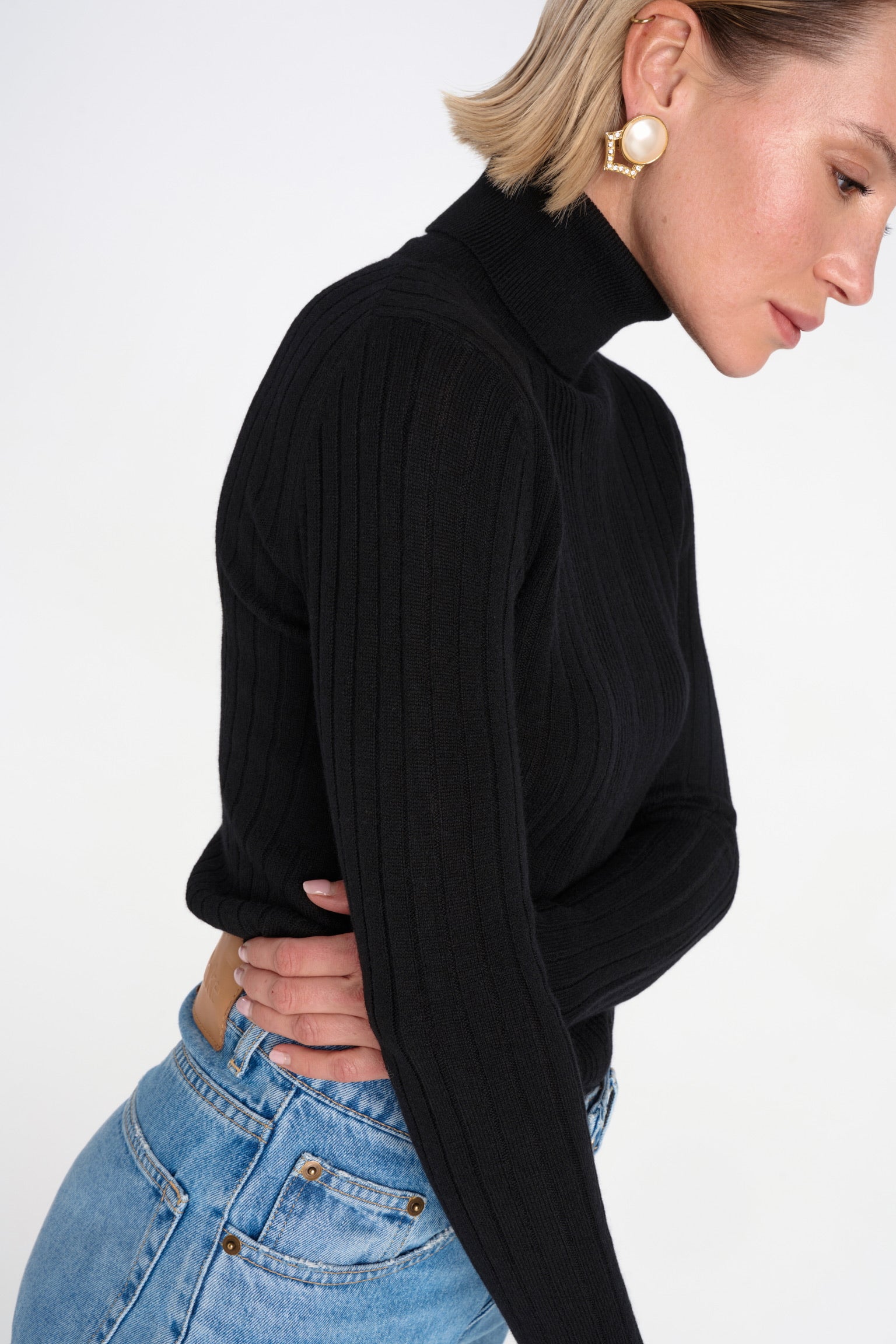 HELEN est un pull fin à col roulé avec un tricotage en côtes. Près du corps, Il est très doux, ne gratte pas, n'est pas transparent et peut se porter seul à même la peau ou en superposition sous notre pull GIL ou notre veste Pietro.